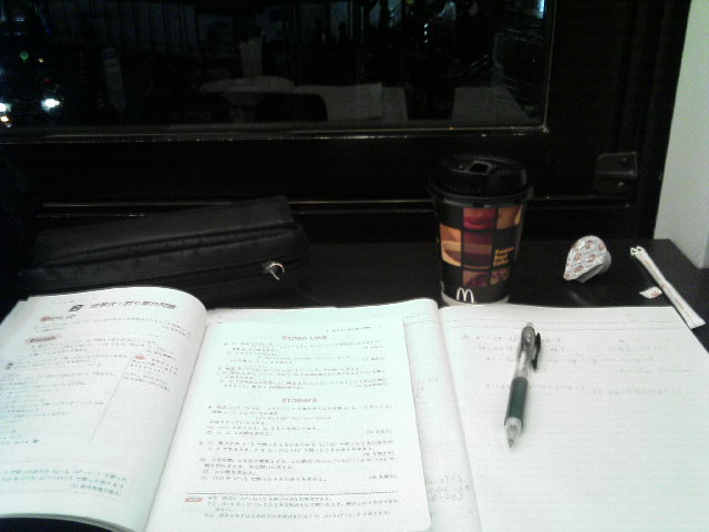 マックでガチ勉...ということで、まぁこんな感じで、数学の問題集を解いていたのですがw、
