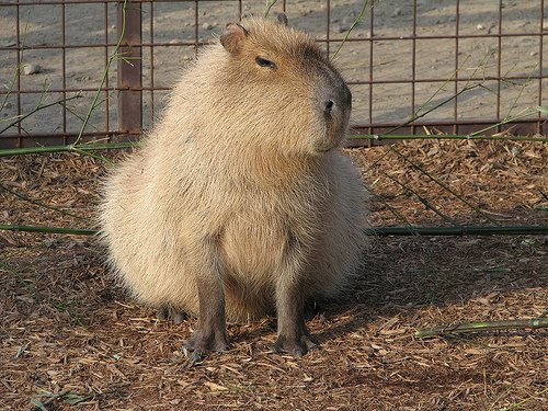 現生種最大の齧歯類。カピバラ科唯一の種。南アメリカ東部アマゾン川流域を中心とした、温暖な水辺に生息し、名前は、グアラニー語の「Kapiyva」(草原の主)に因み、それがスペイン語に転訛し「capibara」と呼ばれるようになった。和名オニテンジクネズミ(鬼天竺鼠)...←ってイカチーナw